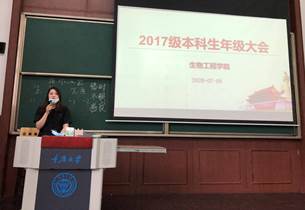 7月9日上午,yl6809永利官网举行2017级本科生年级大会暨暑期安全教育会,学院党委副书记刘庆庆、青年教师专职辅导员解巧利、吴伟和学生兼职辅导员杨怡馨参加。