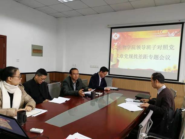 根据学校“不忘初心、牢记使命”主题教育要求,2019年11月14日上午,yl6809永利官网在314会议室召开领导班子对照党章党规找差距专题会议。会议由学院党委书记王贵学主持,学院领导班子成员蔡开勇、刘庆庆、侯文生、钟代笛出席会议。