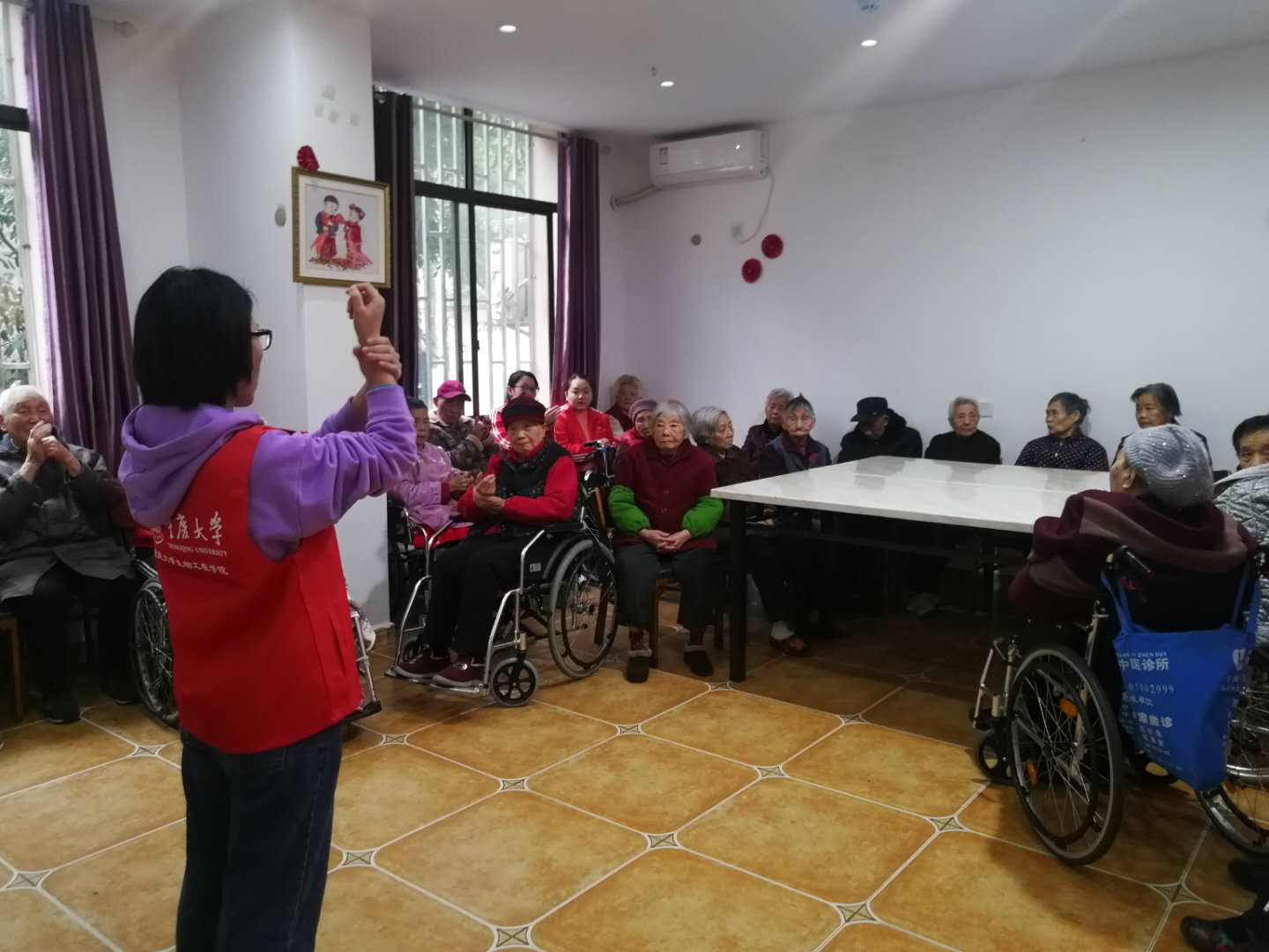 2020年11月1日,yl6809永利官网举办了“九九重阳节,满满敬老情”志愿活动。志愿者们一早便抵达了鸿禧养老院,开始布置演出会场,等候约30名老人们的到来。由于他们年纪较大,很多人行走不便,志愿者配合护工一起帮助老人就坐,等待演出开始。