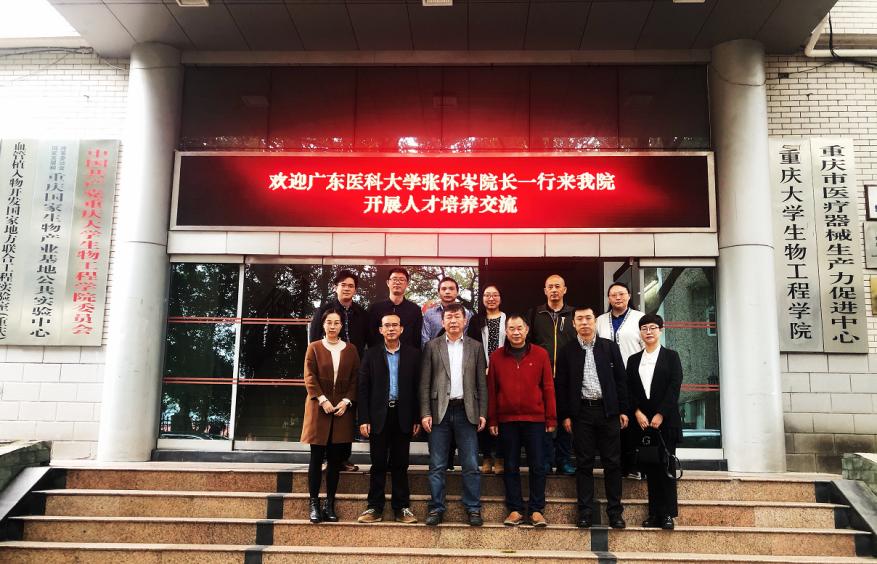 为推进并提升智能医学工程本科新工科专业和学科建设水平,加强兄弟院校之间的交流合作,广东医科大学生物医学工程张怀岺院长带队,率副院长林林、系主任何青、方向林、彭荣超、马莎、范能胜老师一行于10月30日来我院调研交流,蔡开勇院长、田学隆教授及胡宁、陈琳、邓吉楠等老师参加了座谈交流。座谈会在A区216会议室进行,由侯文生副院长主持。