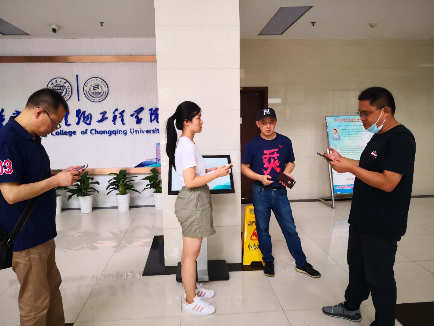 2020年7月13日上午,实验室及设备管理处副处长袁昌武带领设备处人员对本院B区大楼进行实验技术安全检查,中心实验室副主任段铭带领中心实验室人员林汐等陪同检查,袁处长提到全院师生务必加强实验室安全意识,及时处理实验室存在的安全隐患,切实保障假期学院实验室安全。