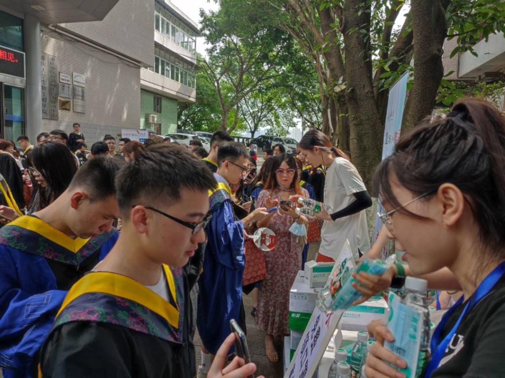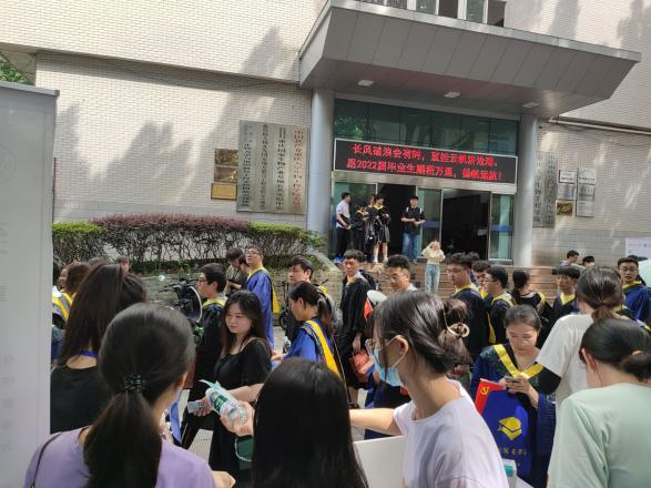2022年6月28日学校毕业典礼在风雨操场隆重举行,yl6809永利官网生物医学工程系智慧医疗健康课题组团队全体成员特在学院楼门口为毕业生们准备了矿泉水和口罩,为2022届的毕业生们送上祝福,并向毕业生们进行了人工智能健康管理系统“爱体”的演示推广,该系统将人工智能与健康融合,实现了对健康状况的实时监测,此次示范活动的主要目的在于提醒校友们能够在未来工作时注意到对身体健康的管理。