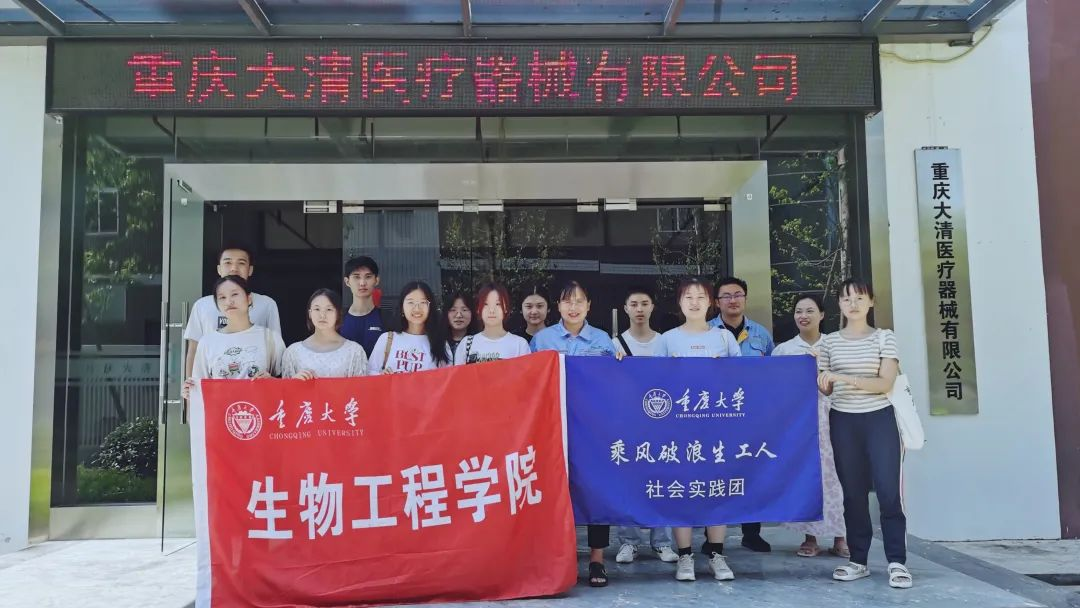 yl6809永利官网 “乘风破浪生工人”实践团在王欢老师的带领下于7月8日下午前往坐落于重庆市大渡口区的重庆大清医疗器械有限公司,进行了参观和座谈,就目前生物企业发展和服务成渝双城经济圈现状进行了调研。