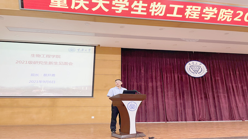 随后,蔡开勇院长发表致辞。蔡院长对所有新生的到来表示欢迎和祝贺,并从学院历史、师资队伍、基地平台等几个方面出发,向新生们生动讲述了学院人才培养综合实力以及学科发展前景。他鼓励新生们要提前做好规划,尽快融入学院,充分利用学院的科研平台夯实学科基础,拓宽专业视野,提升自身本领。同时,蔡院长着重强调了科研过程中的“学术不端”问题,告诫同学们在科研中要遵守学术道德,培养潜心科研、奋勇创新的学术精神。