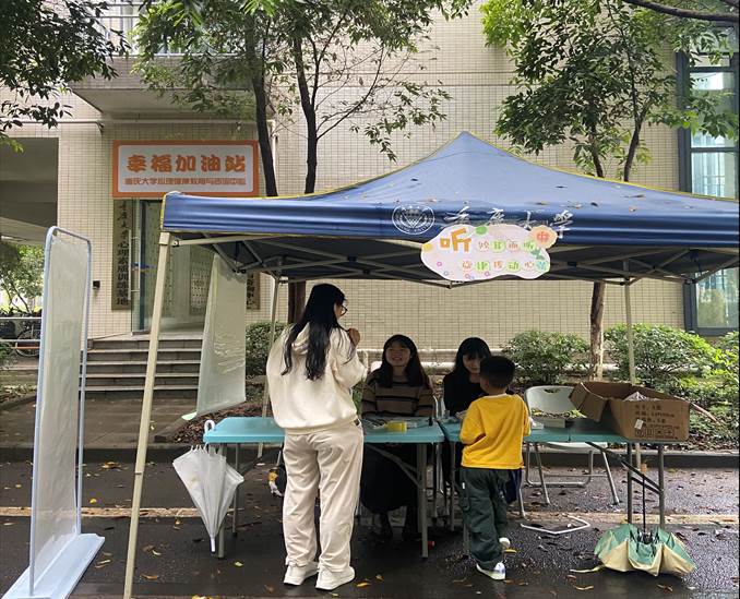 参与“听”打卡的同学需要听歌识曲,表达不同音乐带给自己的独特感受。在听歌过程,同学们渐渐回忆起生活中音乐抚慰自己的点点滴滴……工作人员还借机向同学们介绍了打卡点背后的幸福加油站,分享了加油站墙上有力的情绪标识“我喜欢我的情绪”,努力传递自我关怀的善意。