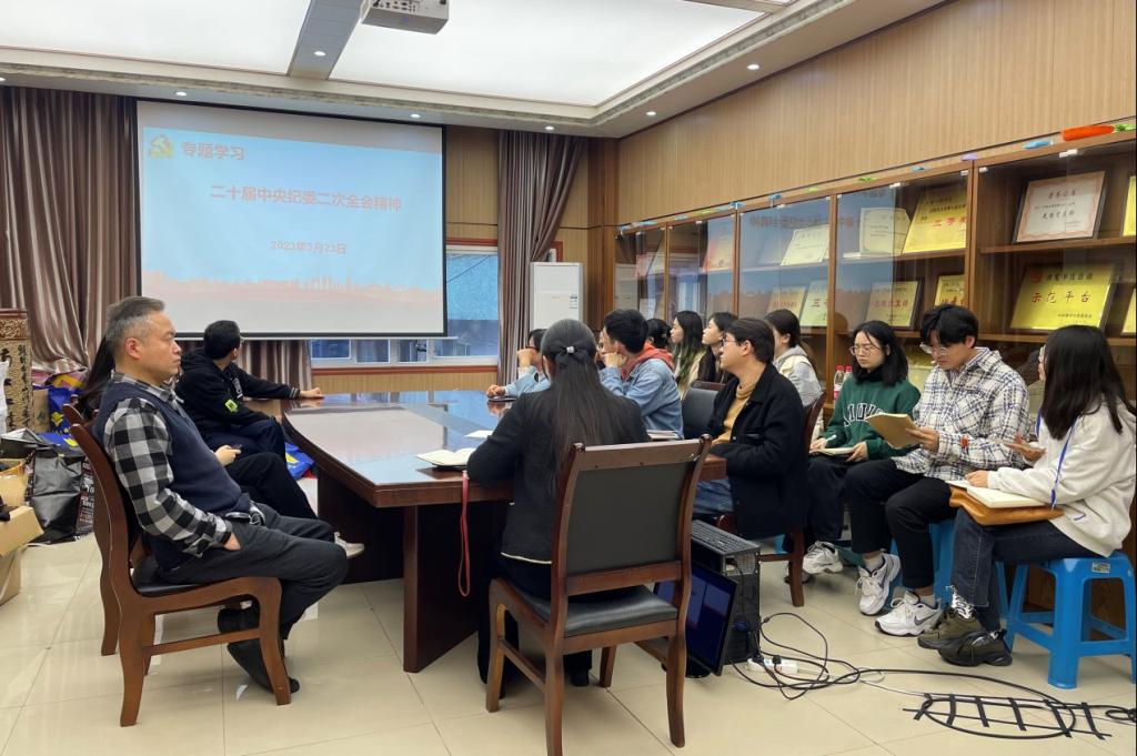 最后,刘庆庆带领全体与会人员共同学习了二十届中央纪委二次全会精神、第六届市纪委二次全会精神以及2023年教育系统全面从严治党工作视频会议精神,并结合纪委实际工作进行了专题学习研讨。