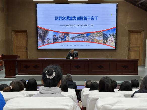 3月29日上午,当代“愚公”毛相林同志讲述《楷模讲堂:以群众满意为目标苦干实干——走好新时代新征程上的下庄之“路”》,“山凿一尺宽一尺,路修一丈长一丈。这辈人修不出路来,下辈人接着修,抠也要抠出一条路来。”毛相林同志带领下庄人咬定目标、苦干实干,打通了脱贫路,走上了致富路。他们的奋斗故事创造了“不甘落后、不等不靠、不畏艰险、不怕牺牲”的“下庄精神”,诠释了当代共产党人勇于面对困难,敢于挑战自我的精神风貌。