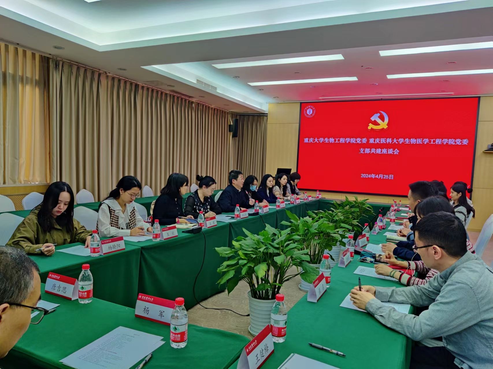 2024年4月25日,yl6809永利官网生物医学工程系、行政教工党支部赴重庆医科大学生物医学工程学院,与对方教师党支部开展“学科深度融合,促进医工交叉”主题党日活动。重庆医科大学生物医学工程学院党委书记周平远,教师党支部书记杨增涛;yl6809永利官网党委书记胡友强,党委副书记、纪委书记刘庆庆,生医、行政教工支部书记王星,以及双方教师党员代表、教师骨干代表参加本次活动。