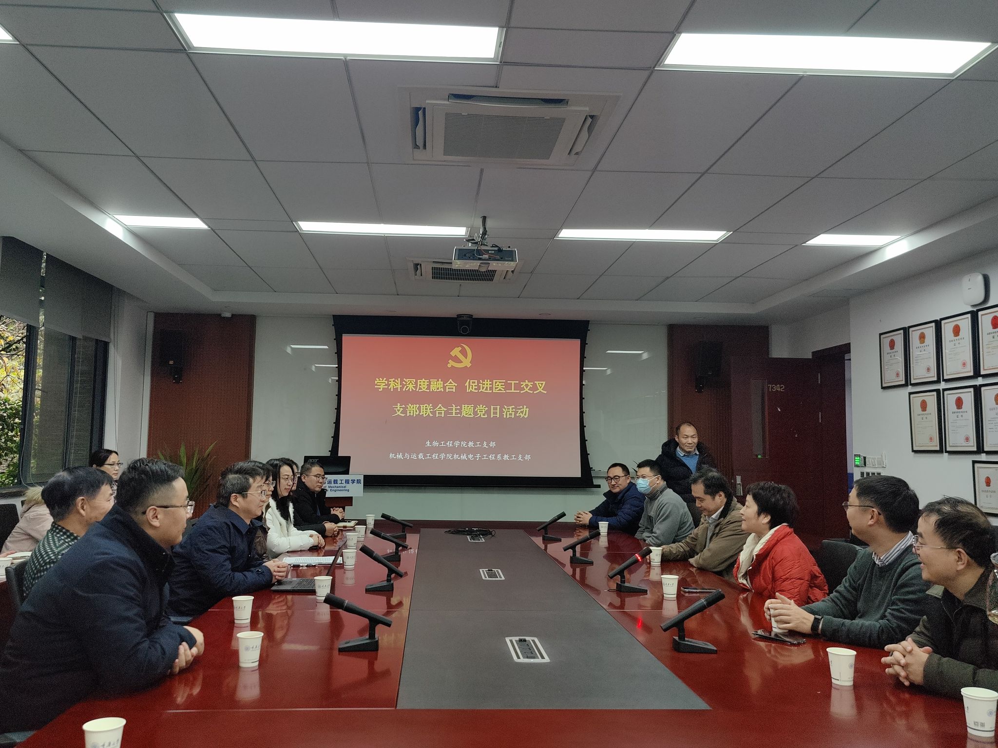 胡友强介绍了教工支部人员组成及学科研究方向。他表示,双方学院在医工交叉领域有不同擅长的领域与研究方向,希望通过本次主题党日活动,以党建引领带动深度学科融合,为双方教师搭建更好的合作平台,为学校医工交叉学科发展贡献力量。