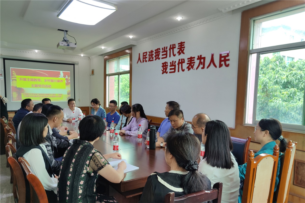 为深入贯彻党的二十大精神,落实习近平总书记关于全面推进乡村振兴的重要思想,坚持农业农村优先发展,坚持城乡融合发展,2023年9月27日,生物医学工程系、行政教工支部(以下简称生医、行政教工支部)赴沙坪坝区歌乐山街道与歌乐村村委联合开展“开展主题教育,乡村振兴康养”主题党日活动。yl6809永利官网党委书记胡友强,党委副书记、纪委书记刘庆庆,生医、行政教工支部党员同志,以及歌乐村村委书记陈刚、村委党员同志参加本次活动。本次活动由生医、行政教工支部书记王星主持。