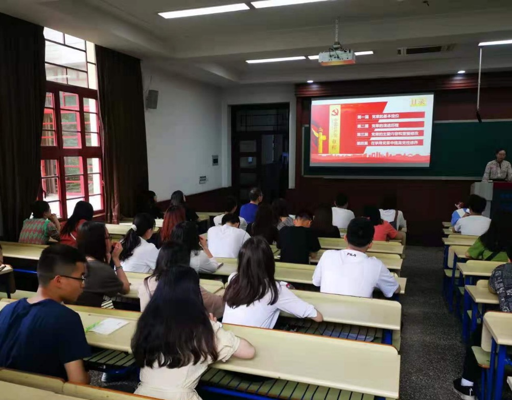 刘庆庆副书记从党章的基本定位谈起,详细介绍了党章的修改过程,最后呼吁大家在学用党章中提高党性修养,真正把党章学深学透,内化于心、外化于行。