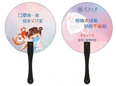 活动前期,乔方玉和张瑶根据参加活动人数以及相关工作进行了策划,并面向全体成员征集了扇子设计稿,大家踊跃参与。经过投票评比,生医硕士二支部毕业生党员高珊的设计脱颖而出,该设计充分体现了本次抗疫志愿活动的主题“疫情未结束、防控不能松”!