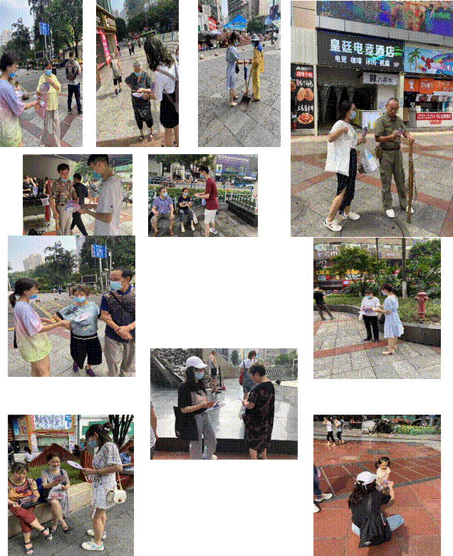 本次志愿活动分别在三峡广场红绿灯、重百超市、永辉超市以及地铁口分四处开展,活动期间每一组同学充分发挥“奉献 友爱 互助 进步”的志愿者精神,尽心尽力向群众宣传防疫小知识,提醒大家虽然天气炎热,但防控不能松懈,请及时佩戴口罩。虽顶着烈日,志愿者们毫无怨言。活动期间,不少人听到志愿者们来自yl6809永利官网,是党员,都赞不绝口,称重大学子有社会责任感,小小街头举动令他们感受到了关怀。
