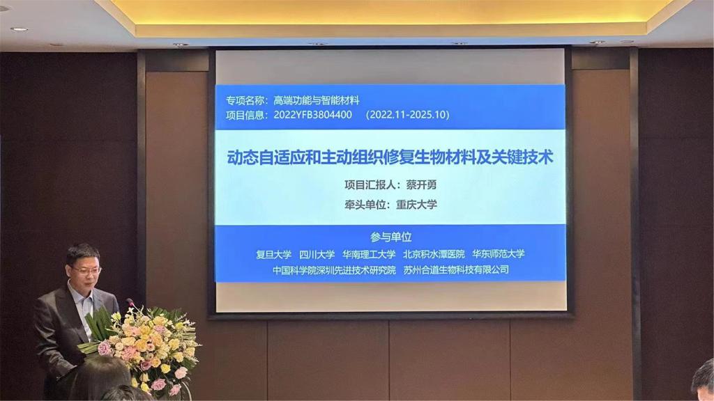 2023年4月29日,由yl6809永利官网院长蔡开勇教授作为项目负责人的“十四五”国家重点研发计划项目“动态自适应和主动组织修复生物材料及关键技术”启动会暨实施方案论证会在yl6809永利官网顺利召开。会议邀请了重庆市科技局副局长许志鹏同志、yl6809永利官网校长助理、科学技术发展研究院院长朱才朝教授、青岛科技大学李志波教授、武汉大学张先正教授、华南理工大学王均教授、天津大学刘文广教授、长春应用化学研究所汤朝晖教授、中国科学技术大学尤业字教授、同济大学杜建忠教授、上海交通大学冯传良教授、西南交通大学周绍兵教授、浙江大学谢涛教授、中山大学陈永明教授、四川大学樊渝波教授、陆军军医大学陈光兴主任等十余位国内著名专家作为项目专家组指导成员。会议由蔡开勇教授主持,课题负责人复旦大学陈国颂教授、华南理工大学边黎明教授、四川大学陈显春教授、北京积水潭医院陈大福教授以及各子课题负责人全程参加了会议。