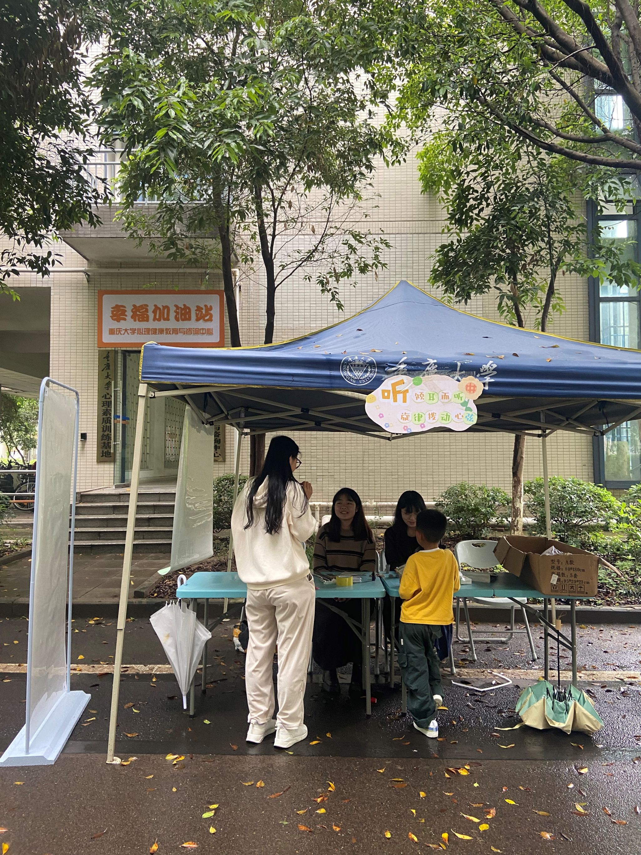 参与“听”打卡的同学需要听歌识曲,表达不同音乐带给自己的独特感受。在听歌过程,同学们渐渐回忆起生活中音乐抚慰自己的点点滴滴……工作人员还借机向同学们介绍了打卡点背后的幸福加油站,分享了加油站墙上有力的情绪标识“我喜欢我的情绪”,努力传递自我关怀的善意。