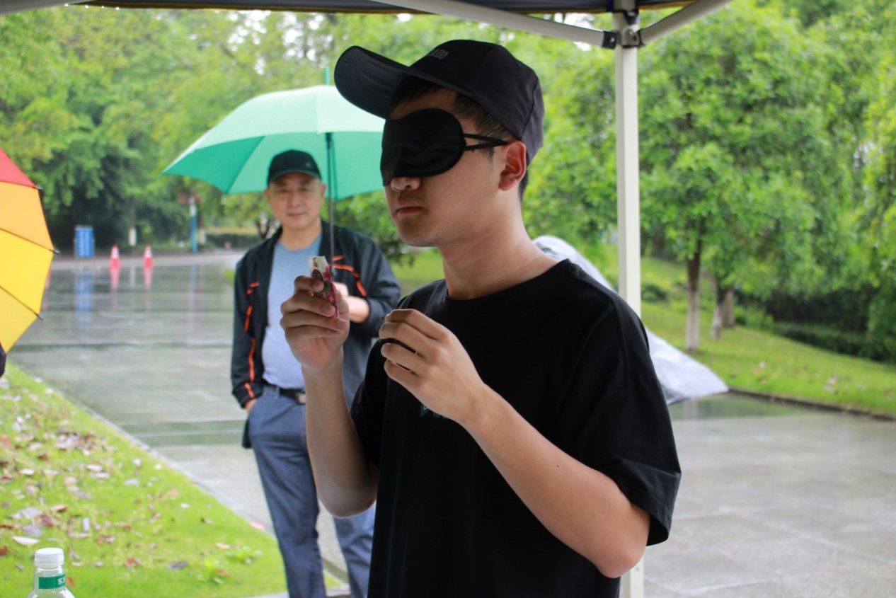 参与“尝”打卡的同学需要蒙眼品尝不同口味的果冻,以起到关闭视觉、放大味觉的效果,从而获得前所未有的新奇体验和联想。