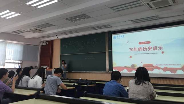 各支部分别开展特色活动:歌唱《我和我的祖国》、舒婷《祖国啊,我亲爱的祖国》诗朗诵、讲诉自身感受和对自己的期待、写信给三年后的自己等。
