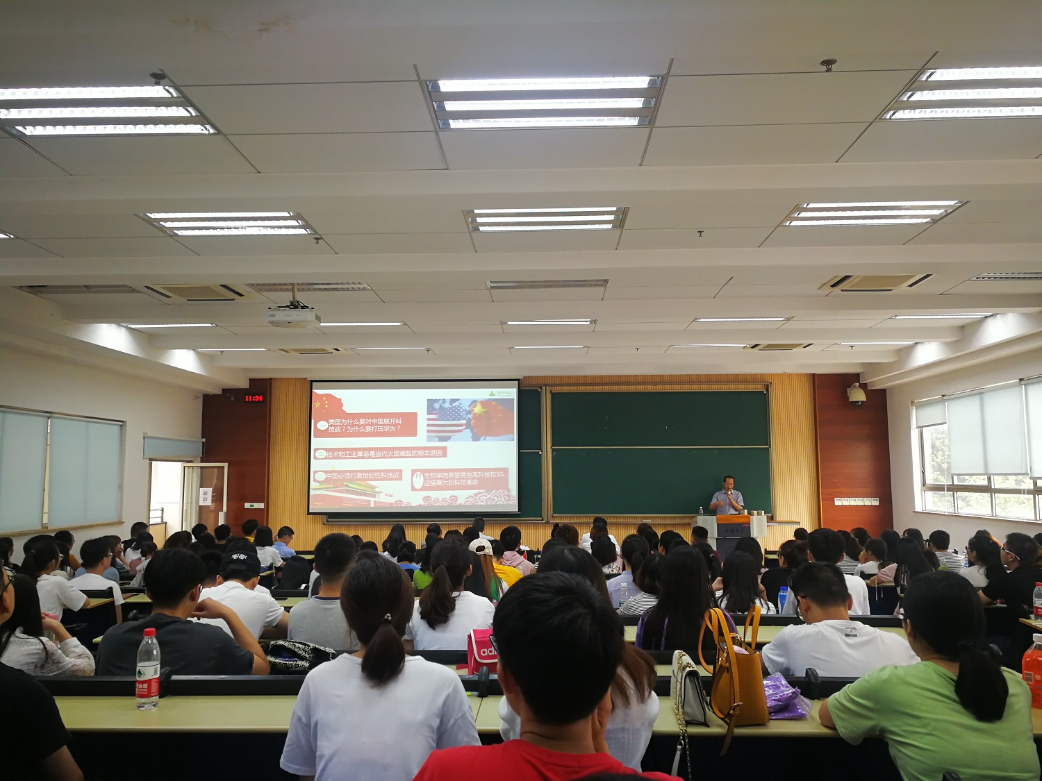 王贵学书记给全体同学带来了题为“不忘初心,牢记使命,打赢新一轮科技战——中美科技战思考与第六轮世界科技革命”的主题讲座。他以美国打压华为为例,解析了美国向中国展开科技战的深层动机。并回顾了中国近三百年来因技术落后而丧失发展机遇的史实,介绍了近年来中国在科技自主发展上所做出的重大努力,表示中国有决心、有信心打赢这场世纪性科技战。最后,王书记激励大家“世上无难事,只要肯攀登”,希望同学们能在生物学院学有所成,取得进步。