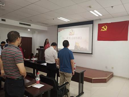 随后,面对鲜红的党旗,大家高举右手,眼神坚定,在刘庆庆同志的带领下新党员宣誓,全体党员重温入党誓词。