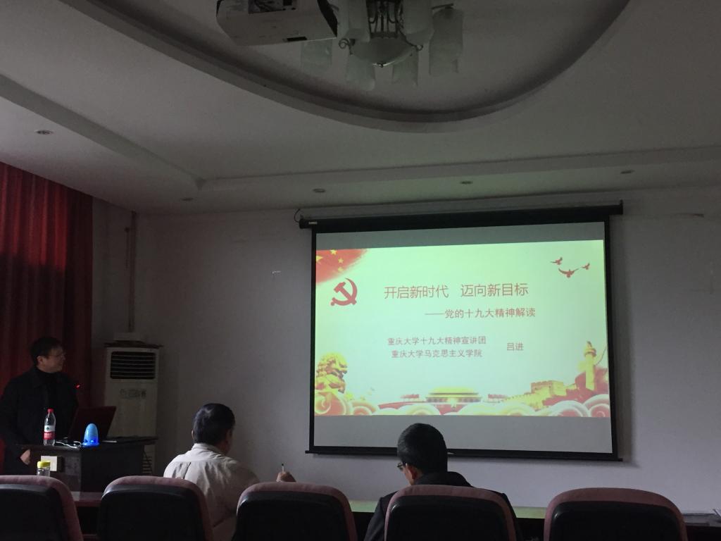 吕进老师将本次宣讲分为三个方面,即“党的十九大概况及重要意义”、“准确把握党的十九大主题”和“深刻理解新时代”。
