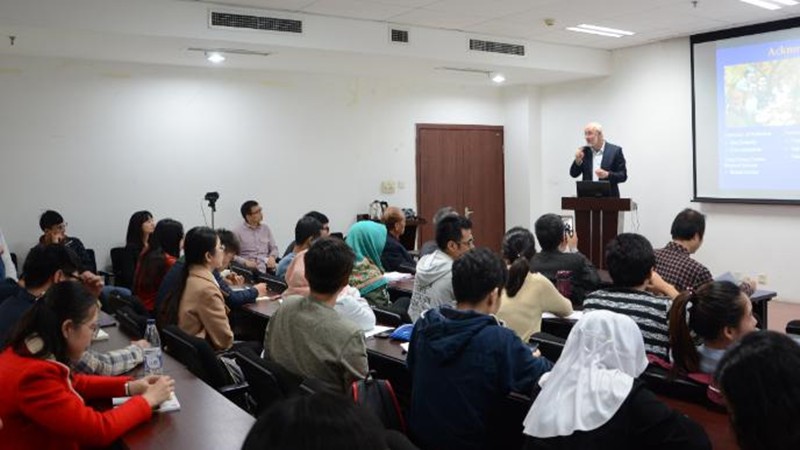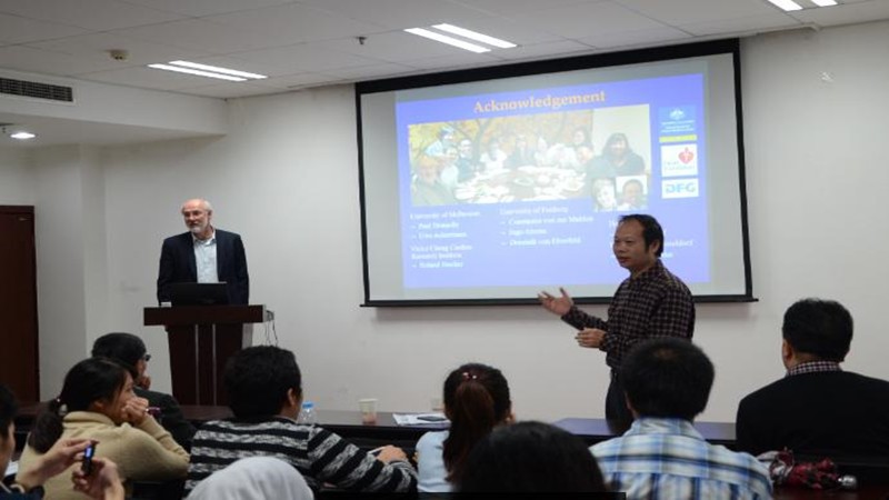 Karlheinz Peter教授为大家带来题名“Developing imaging technologies for atherosclerotic plaque instability using a newly developed mouse model”的全英文学术报告,他提到利用可以产生动脉粥样硬化不稳定斑块的小鼠模型来研究炎症、血栓形成,动脉粥样硬化和心肌梗死,介绍了多种成功应用于血栓和不稳定斑块的MRI、PET、CT、超声波和荧光成像检测技术,凸显出新的生物标志物以及分子显像策略在在体研究动物疾病的重要性;根据炎症、血栓形成相关机制,提出了新的抗血栓和抗炎方面的治疗方法和生物技术,引起在场师生的高度评价和共鸣。