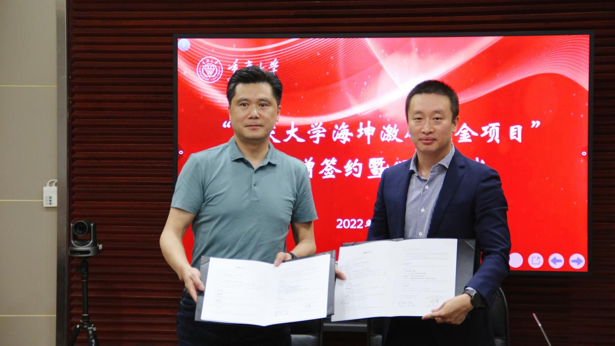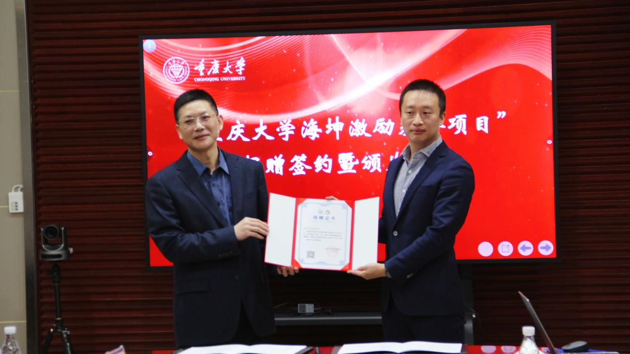 4月28日,“yl6809永利官网海坤激励基金项目”捐赠签约暨颁发仪式在yl6809永利官网主教学楼510会议室举行。重庆海坤医用仪器有限公司董事长胡航、总经理陈南西等公司高管、yl6809永利官网教育基金会秘书长许骏、yl6809永利官网领导班子及师生代表等40余人参加本次仪式。yl6809永利官网党委书记王贵学主持会议。